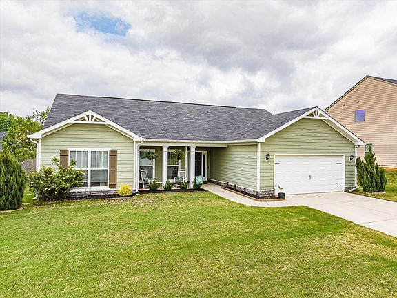 Charming 4 bedroom, 2 bath ranch, all electric home with no HOA. Home features a spacious floor plan with luxury vinyl tile plank flooring in main areas, carpet in bedrooms. Kitchen features beautiful black granite countertops and stainless steel appliances. This split floor plan has 3 bedrooms and bath tucked away from the owner's suite. The owner's suite features a garden tub, walk-in shower and a walk-in closet. The home is wired for surround sound throughout the home for easy entertaining. The rocking chair front porch is covered as well as the back porch. Great location to Fort Gordon, shopping dining, I-20 and don't forget the annual Oliver Hardy Festival!