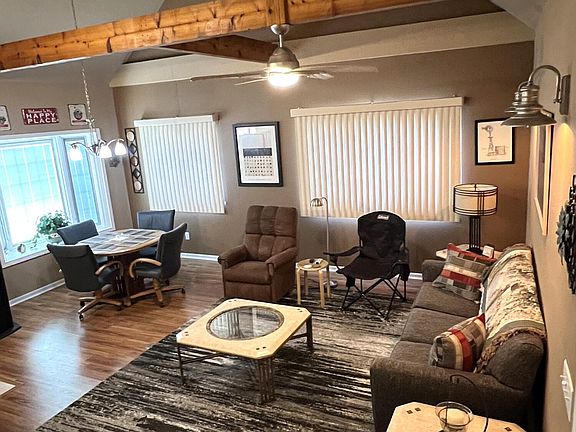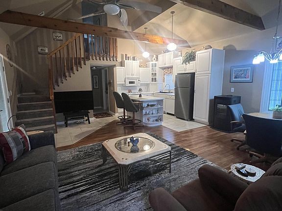Beautiful, spacious cabin in a 55+ neighborhood just minutes from Table Rock Lake. Enter through an inviting sunroom with double closet storage. As you enter this cabin you will find an open concept floor plan in the living room and kitchen with vaulted ceilings and beautiful wood beams. The master bedroom features an oversized walk-in closet, ensuite full bath with a walk-in shower and exit to the covered back deck. Enjoy a beautiful view while sipping your coffee or grilling out. Back inside you will find a grand staircase to the oversized bedroom in the loft. This second bedroom features 2 separate closets as well as a full bathroom with another walk-in shower. This home has been beautifully maintained with a lot of new upgrades including a hail resistant roof installed in 2020, 2-year-old water heater, new carpet in loft, stairs and master bedroom, new flooring in the living room and fresh paint throughout. The Wilderness Club is a 55+ community with a very low HOA of $50 per month. HOA includes the use of the Clubhouse, pool, hot tub, lawn care, trash, recycling and open fence storage area for RVs or boats. This cabin and great community is ready to welcome you home.