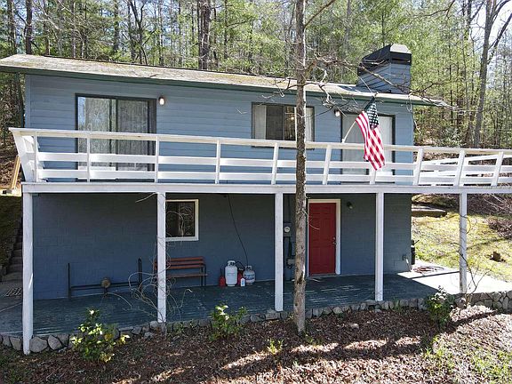 MOUNTAIN CABIN ON CREEK WITH NO RESTRICTIONS...Here is your chance to own a cozy 2 bedroom, 2 bath mountain cabin on a creek. Main floor living with with spacious kitchen, living area features a wood burning fireplace with stove insert that adds charm and heats entire cabin. Enjoy the peaceful sounds of the rushing creek from the covered rocking chair deck. Lower level has full bath and is waiting for you to put your personal finishing touches to. Gentle property with room to have a garden along the creek.