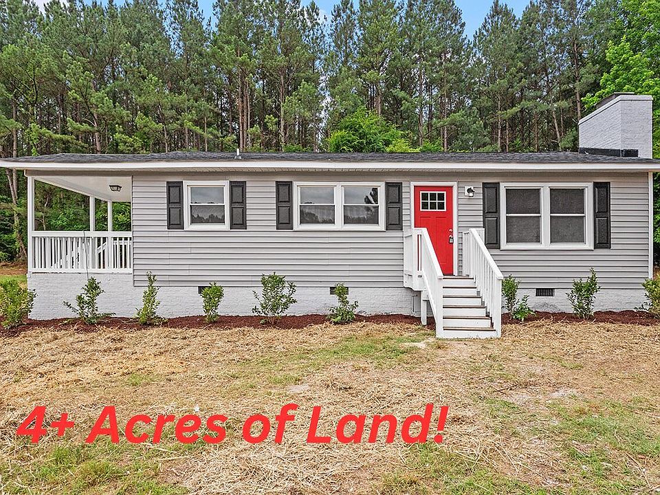 Beautiful remodeled ranch home overlooking a huge 4 acre lot great for horses! Updated kitchen with new shaker cabinets, granite counter tops, tile back splash and stainless steel appliances. Updated bathroom with new tile floors and custom dual vanity with quartz top. New engineered wood floors throughout main living area and new plush carpet in bedrooms. Freshly painted inside and out with smooth ceilings. New hardware and fixtures throughout. Just minutes from downtown Louisburg! NEW WINDOWS, ROOF, HVAC AND WATER HEATER IN 2024!