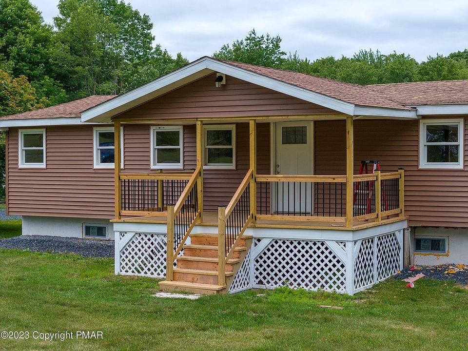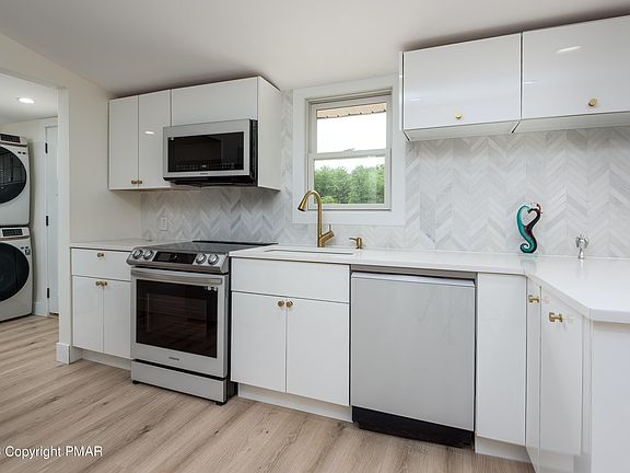 Welcome to this stunning home nestled on a private 2.2-acre yard. This exquisite property boasts luxurious renovations. The spacious living area features three bedrooms & two baths. The bathrooms have exquisite walk-in showers with beautiful tile work, offering a spa-like experience. The custom kitchen, which is sure to delight any culinary enthusiast. features sleek, custom cabinetry complemented by a stunning Carrara marble backsplash & Quartz Counters with top of the line appliances. The abundance of natural light is thanks to the expansive Anderson windows & sliders that connect to the new deck. The full finished basement perfect for a home theater, game room, or home gym. There is a 1300 sq foot insulated and heated garage. Don't miss making this exceptional home your own!