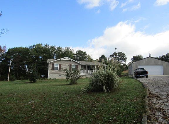 Well maintained Manufactured home on permanent foundation with front covered porch. Detached 24 X 24 Garage with overhead door and concrete floor. Detached storage building, Home is carpet and vinyl flooring, open floor plan, 3 BR two bath. Almost an acre of land on corner.