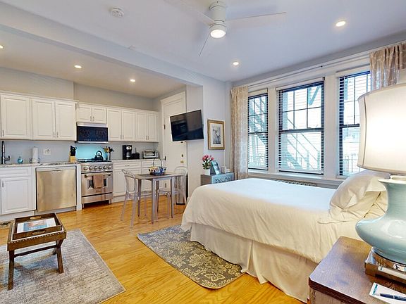 This spacious and sunny studio apartment feels like a one-bedroom unit, offering easy access to BC, BU, Saint Elizabeth Hospital, and public transport. Located just steps away from restaurants, coffee shops, and grocery stores, this apartment provides a convenient and vibrant living experience. This large studio features a queen-sized bed, a sofa for watching TV, a dining table, a television, WiFi, a newly renovated bathroom, and a small alcove with a dresser. The balcony, complete with a table and chairs, offers a perfect spot to relax outside. Pack n' Play and high top chair are available upon request for $10 per night. Across the street, you'll find three restaurants, a coffee shop, and a convenience store. Enjoy a leisurely walk around the lovely Chestnut Hill Reservoir or explore Cleveland Circle and Brighton Center for local dining, shopping, and nightlife. Public transportation is right at your doorstep, with several bus lines just outside and all three Green Line trains less than a ten-minute walk away. Smoking is strictly prohibited inside the premises, including all rooms and shared spaces, with a cleaning fee of $300 if evidence of smoking is found. Maximum occupancy is limited to the number of individuals listed in the reservation, and unauthorized guests may result in expulsion or additional charges. A $300 fine will apply for verified noise complaints that unduly impact neighboring residents and/or violate local noise ordinances. Guests agree to pay a fee of $150 for a lost key and a lockout fee of $100 for assistance in regaining access to the property. Pets are permitted in select apartments, subject to approval and a non-refundable pet sanitation fee. Additional charges, as well as size and breed restrictions, may apply and vary by building. Guests must adhere to the check-in and check-out times as specified in their reservation details, with unauthorized early entry or failure to check out by the agreed-upon time resulting in a fee assessed at the Host's discretion.