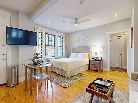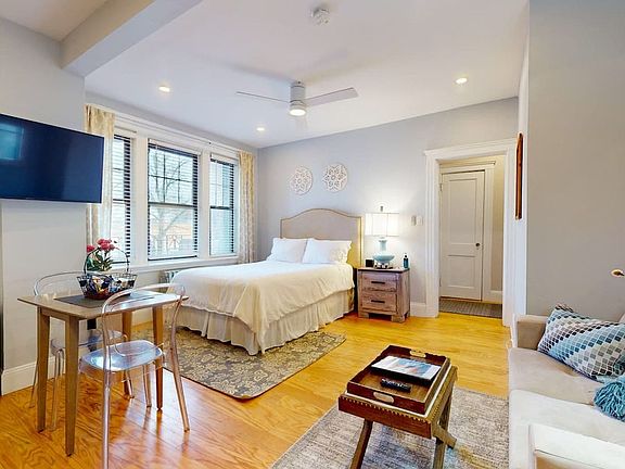 Feel at home in this spacious, recently renovated furnished studio apartment located just 1 mile from Boston College. Situated minutes away from Brighton Center and Cleveland Circle, this apartment offers easy access to local shops and a variety of international cuisines at nearby restaurants. Prefer to stay in? Prepare your own meals in the apartment's brand-new full kitchen with granite countertops and stainless steel appliances. This large studio offers a queen-sized bed, a sofa for watching TV, a dining table, a television, Wi-Fi, a newly renovated bathroom, and a small alcove with a dresser. A balcony with a table and chairs provides a perfect spot to relax outside. Pack n' Play and high top chair are available upon request for $10 per night. Explore the neighborhood with ease as public transportation is right at your doorstep. Several bus lines are just outside, and all three Green Line trains are less than a ten-minute walk away. Just across the street are three restaurants, a coffee shop, and a convenience store. Take a leisurely walk around the lovely Chestnut Hill Reservoir, or head to Cleveland Circle or Brighton Center to enjoy local restaurants, shopping, and nightlife. This is a fully furnished unit offered for short-term, transient use only. It is not a rental tenancy or lease. All guests must maintain a primary residence elsewhere and agree to abide by house rules, maximum occupancy, and payment terms. No subletting or unauthorized guests. There is a $150 lost key fee and $100 lock out fee. Self check-in and check-out are available, and a welcome booklet will be emailed two weeks prior to arrival, with arrival instructions sent three days before check-in.
