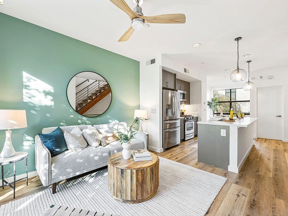Sleek, modern, and ideally located on the Oakland, Emeryville and Berkeley borders in Oakland’s lively NOBE neighborhood. Beautifully designed, light-filled 2 bed, 1.5 bath townhome in a quiet and friendly community, nestled between Hollis Street & San Pablo Avenue. Brimming with stylish touches, dramatic tall ceilings, floor to ceiling windows, new beautiful SPC wood grain floors, and a contemporary kitchen remodel. This tri-level townhome features an attached two car garage on the ground floor, open layout on the main level, and two lofty bedrooms on the upper level. Each level has its own private outdoor space, including two patios on the ground and main floors, and an en suite balcony where you are greeted by the sunrise every morning as you enjoy an unobstructed view of the Berkeley and Oakland Hills.The commuter friendly location offers easy access to all major freeways, the Transbay bus, the free Emery-go-round shuttle to BART, and the Emeryville Amtrak Station. It is also a walker’s and biker’s paradise with immediate access to Emeryville’s greenway, the SF Bay Trail, and the soon to be constructed San Pablo Biking. Also a short walk away from lively local breweries, bars, restaurants, dining, fitness centers, and shopping.This dazzling and welcoming home truly has it all