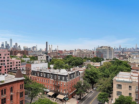 Spectacular Views! A corner unit on a high floor. Welcome to your new home on the picturesque, tree-lined streets of Clinton Hill, Brooklyn, adjacent to Fort Greene. Unit 10B is a stunning corner unit offering breathtaking views and abundant natural light with its Southern and Western exposures. + New Laundry Room in the building + Recently placed Windows + Updated Heating System. + Newly updated Kitchen and Bathroom (2023) This two-bedroom apartment features original hardwood floors throughout and large, newly installed windows that enhance the space with natural light and beautiful sunset views. The recently renovated kitchen and bathroom add a modern touch to this charming home. The apartment boasts a spacious open living area and a windowed kitchen, for both entertaining and everyday living. The hallway leads to an oversized primary bedroom with sweeping views of Manhattan and a large closet for ample storage. The renovated bathroom features marble tile flooring and clean finishes. The second bedroom is versatile and can serve as a guest room or office space. Clinton Hill Apartments offer a range of amenities designed for your convenience and comfort, including a large laundry facility, elevators, on-site maintenance staff, 24-hour security, bike storage, a package room, and a common courtyard. Recent upgrades include the installation of more efficient and quieter windows in all apartments, along with an improved heating system. Transportation options are plentiful, with the G and C trains nearby and the B54 bus on the corner, providing quick access to downtown Brooklyn and other train lines. The neighborhood is known for its vibrant dining scene along Dekalb Avenue and Myrtle Avenue, and new attractions in the Navy Yard, including a ferry stop, Russ & Daughters, and Wegmans grocery store. Nearby amenities include Fort Greene Park, the farmers market, BAM, Pratt Institute and sculpture garden, City Point, Barclays Center, Whole Foods, and the Apple Store. This pet-friendly building allows pied-à-terre and permits sublets after two years of ownership. The apartment is wired for Fios, and the minimum down payment is just 10%. Discover the perfect blend of historic charm and modern convenience at 185 Clinton Hill Avenue10B. Make this exceptional apartment your new home today. IMAGES AEE FROM THE APARTMENT as it is presently.