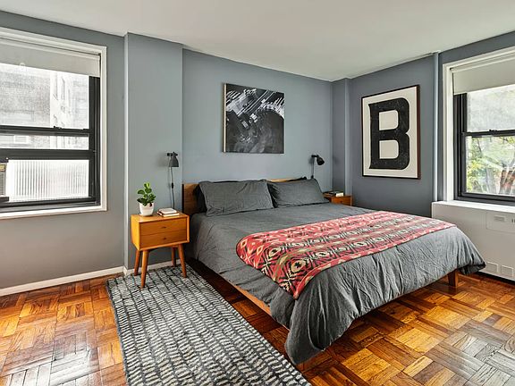 Welcome Home to a Wallace Harrison designed apartment (basically Rockefeller's personal architect who designed Rockefeller Center, the UN and Albany's Empire State Plaza). Beautiful light from 6 large windows. All windows are energy efficient and were recently replaced. A rare find, this lovely inviting 2 bedroom home (or 1BR plus office, guest, den, nursery, studio). Sun streams in all day. Charming updates make this post war elevator building with full-time security a wonderful place to come home to. 24/7 security and low maintenance which includes heat, water and gas, and the coop complex has a co-generation system which keeps the electric bill very low.