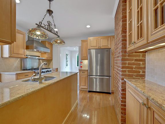 Location Location! Perfect for extended family with 3 floors of living space. 5 bedrooms, 2 full bathrooms, 2 large kitchens, dining room, eating area, multiple living rooms, laundry, parking, fenced in yard. Clean and freshly painted with gleaming hardwood floors. Stainless steel appliances with granite kitchen countertops. Walk to the center of town!! Must see! Landlord responsible for landscaping. Tenant responsible for snow and all utilities