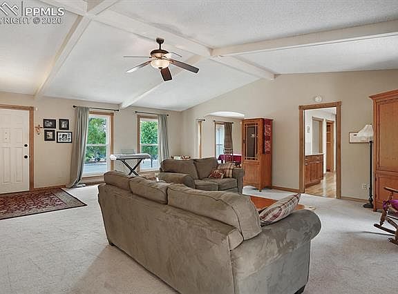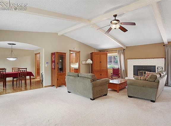 Charming rancher on a quiet cut-de-sac in School District 12 (Cheyenne Mountain) in Country Club Estates. Over 4100 total square feet, 5 bedrooms, 4 bathrooms, 2 car garage, and 4 fireplaces. Newly remodeled kitchen with stainless steel appliances, gas cooktop, hood, and quartz counters. New concrete driveway, newer low maintenance backyard landscaping with expansive patio. New Decra metal coated roof, freshly painted stucco, some newer windows. Large sunroom or multi-purpose room off the kitchen with fireplace and 1/2 bath. large kitchen island, formal dining space, large living room with fireplace and surrounded by windows. Large master suite with a sitting area and fireplace, large walk-in closet and walks out the back patio. 5 pc master bathroom, updated shower tile, skylights, and jetted tub. 2 additional main level bedrooms and full bathroom. This home has 3 furnaces and 2 new a/c units. The basement offers 2 additional large bedrooms, a 3/4 bathroom, huge family room with fireplace, storage space, and mother-in-law space with kitchenette. Updated electrical panel, incredibly cared for home. Located near the Cheyenne Mtn Resort & Broadmoor Hotel with options for golf and swimming. Quick access to Cheyenne Mountain and Fort Carson. Don't miss this opportunity.