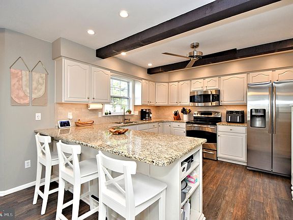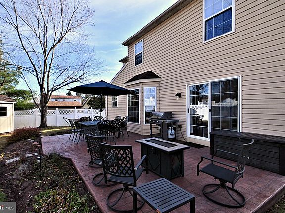 Welcome Home to desirable Pear Tree Village! Nestled on a cul-de-sac, this beautifully maintained home is truly move in ready. Inviting foyer welcomes you home. The center hall has a powder room. The light and airy living room features numerous large windows, and neutral carpet. The open floor plan leads you to the dining area with sliders out to the patio and rear yard. The updated eat in kitchen has granite countertops, breakfast bar, high hats, undermount cabinet lighting, and stainless steel appliances. The thoughtful design extends to the finished basement, providing an additional 483 sq. ft. of versatile living space and ample storage—perfect for a cozy family room, home office, or gym. Upstairs, the main bedroom offers a walk-in closet and separate bath, while the hallway features a convenient stacked washer and dryer. The updated hall bathroom adds a modern touch throughout. Two additional good sized bedrooms with large closets complete the second floor. Outside, the partially fenced backyard is a true retreat with a new shed, above ground pool, and a beautiful patio—perfect for relaxing or entertaining guests. The two-car garage is clean and spacious with plenty of room for parking or projects. Ideally situated close to major roads yet offering a peaceful, country-like atmosphere, this home perfectly combines comfort and convenience. Don’t miss this opportunity to make it yours!