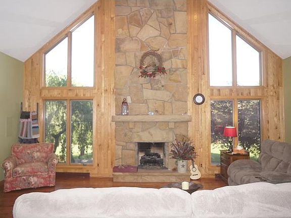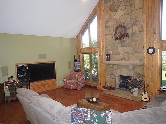 Minutes from Route 8S, this three bedroom two story features spacious rooms throughout! Great room boasts a floor to ceiling gas log fireplace and 20 ft ceilings! Open and airy kitchen with stainless steel appliances looks out over dining area and a 9x8 breakfast nook. Master bedroom is adorned with skylights and French doors leading to rear patio, his and hers closets, and large master bath with soaking tub, separate shower, and double bowl sink. Huge lower level houses a game room, family room w/gas log fireplace, and music room w/ built in speakers. Outside you'll find a heated above ground pool and panoramic views! Apple and pear trees, as well as a small pond are also found on this gorgeous 8 acre parcel with OGM rights being conveyed to new owner!