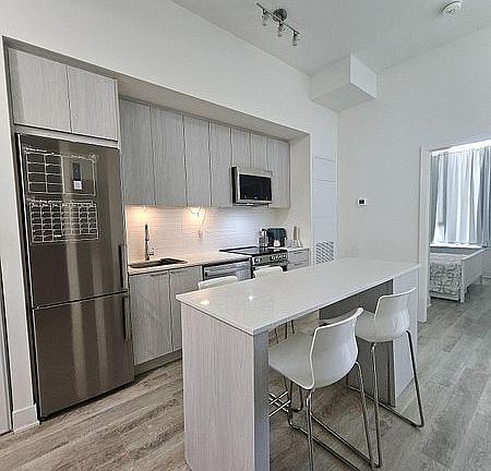 Welcome to The Davis Residences, a Convenient Location with upscale amenities. Built in 2024, this one-bedroom plus Den unit is ideal for a small family or for people looking to live with style and the comfort of luxury. Public transit is just steps away, and minutes to historic Main Street. Excellent building amenities include a gym, guest suites, party room, BBQ patio, games room, movie theatre and security guard. This ground-floor unit has the comfort of not waiting for the elevator. Open concept floor plan with stainless steel appliances in the Kitchen, with a quartz countertop. Open balcony for you to enjoy your summer time. A beautiful park is right outside the building, and there is convenient visitor parking for your guests.