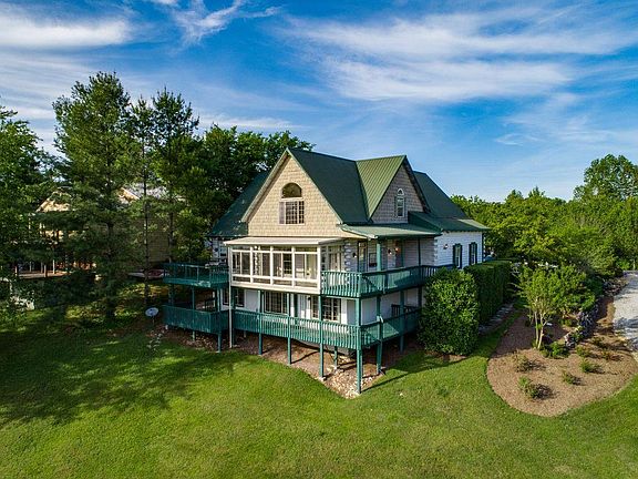 Rustic Elegance with Incredible Lake Views! Stunning wood floors throughout, vaulted, exposed beam ceilings. Bed & full bath on main level. Renovated Kitchen w/quartz, gas range, tile floors,& back splash, custom cabinetry. Multiple decks & lg sun-room overlooking lake. Huge flex/5th bedroom & Master suite upstairs. Full fin Basement w/2 bedrooms, full Jack & Jill bath, bonus w/stacked-stone fireplace. Extensive landscaping w/sprinkler system..NO SHOWINGS UNTIL FURTHER NOTICE!
