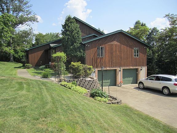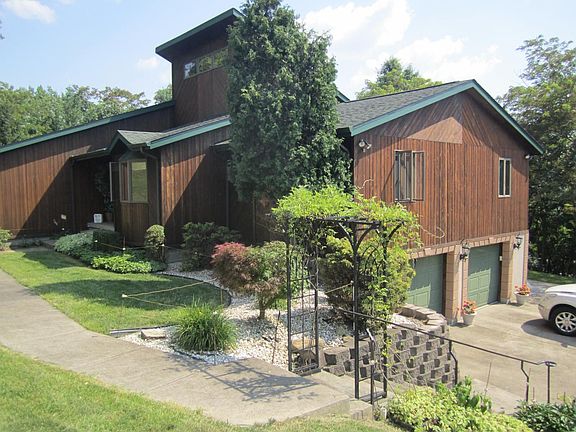 This beautiful cedar home is situated on a larger lot in North Park in Wheeling overlooking the Ohio Valley. The unique architectural design with vaulting roof, bay windows and a wrap-around patio/deck and gazebo along with the landscaping set it off from other homes in the neighborhood. The curved concrete driveway and wooded areas surrounding the property also adds to the charm. Upon entering the sky lighted foyer you look up into a 22' vaulted ceiling with a vent-free gas brick fireplace reaching toward the roof. The ceiling extends down toward a 16' glass wall with patio door centered to the patio. This area is lighted with five beveled glass chandeliers and another light over the dining table. The kitchen has been remodeled with custom built cherry cabinets, a 10' bar built into 24' of cabinetry and additional space for a table or computer cabinet. The 22X24' living room is highlighted with indirect lighting, a cathedral ceiling with fan and lights, a large bay window and an unvented gas log fireplace. The main bathroom is remodeled and has a 4x4' glass enclosed shower. The basement boasts of a two car garage with large built-in workbench, two 10' clothing closets, washroom area with cabinetry abounding, a half bath, the gas furnace and AC, and two generous room under the living room for extra storage, These amenities are what make this property unique on the market.