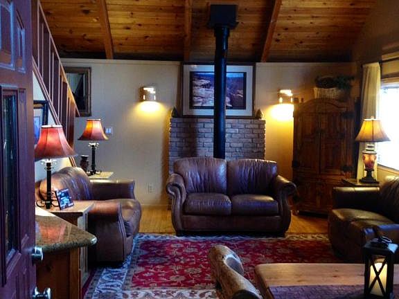 Across the street from the forest, Not a through street, Minimal traffic.Real Wood Floors; Kraftmaid Cabinets - in Kitchen (gas oven/range and side by side refrigerator, included), Kraftmaid Cabinetry in Separate Laundry Room w/ (washer/gas dryer and upright freezer, included). Granite Countertops in Kitchen and Bathroom; w/ Kitchen Island. Central A/C, Brown Napoleon Wood Stove; Loft - Bedroom or Family Room, Wall Loft A/C-heat supplemental; Covered Front Porch, Large Deck, Back Patio with 7 Person Hot Springs Hot Tub Included. Perimeter Fenced & Gated, Wood Fence & Upgraded Metal Fence; Treed lot Aspens and Ponderosa Pines. Hot tub under the stars,Year-round living.