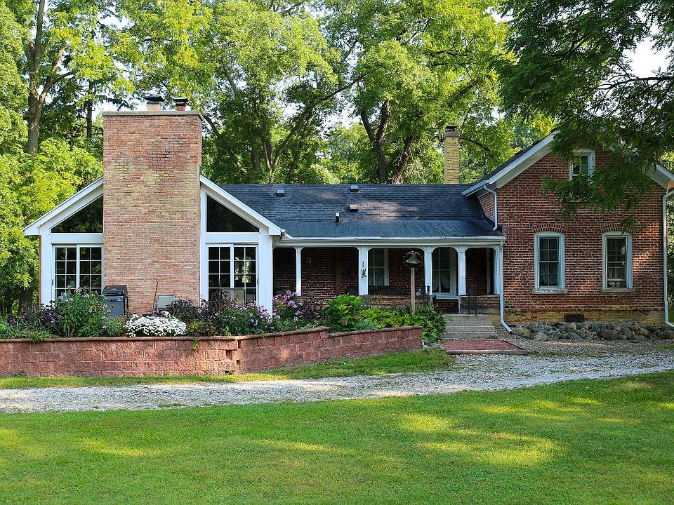 Perfectly situated against a backdrop of nearly 2 acres of dense forest w/ expansive tree lined lawnsin the front & rear lies a truly historic home packed w/ charm & character. Built in 1877 & added on toin 1959 this lovely residence has been updated while keeping much of the original character. Updatedkitchen features granite counters, stainless appliances & a charming walk in pantry. Huge great roomoff the kitchen has a magnificent Mexican tiled floor to ceiling fireplace w/ Aztec inspired pattern.Main level master suite comes w/ a cute corner fireplace & sitting area that walks out to a coveredrear porch. 2 nd floor bedroom is quite spacious also features a sitting area w/ full wall built in storage.Main level full bath has been updated in a period style keeping w/ the era of construction. Myfavorite room is adjacent to the formal dining, a cozy little brick lined room overlooking the frontlawn. Expansive patio w/ built in pond offers up a relaxing place to unwind.