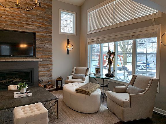One of a kind waterfront home on beautiful Crystal Lake. Turn key home being sold with all designer decorated furnishings and outdoor accessories. Outdoor space includes extensive stainless steel and granite kitchen w built in grill, refrigerator and pizza oven. Two limestone patios with fire table and hot tub. Spectacular sunrise and sunset views. Private dock. Stunning updated white and granite kitchen w built in appliances, open to family room, dining & sunroom w radiant heat. Hardwood flooring. 2 story great room w fireplace and clerestory windows with stunning water views. Generous Master Suite and luxury spa bath. 2nd and 3rd bedroom with private bath/walk in closet. First floor includes den and a full bath. Separate laundry room. Heated garage. Professionally landscaped with outdoor lighting. Full insulated crawl w significant storage. New roof in June 2020.