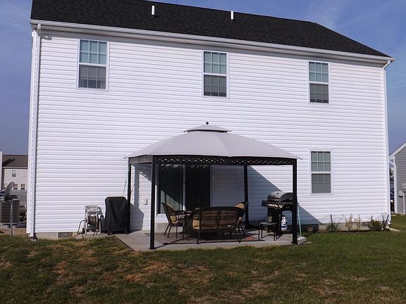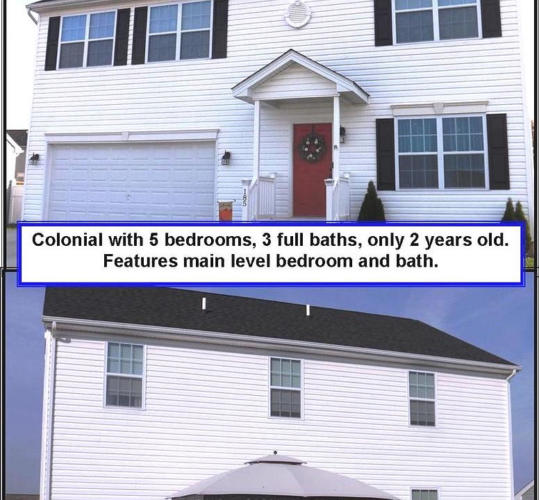 This practically brand new Colonial features 5 bedrooms, one of which is on the main level. Also features full bath on the main level. Many upgrades, luxury vinyl plank flooring on main level. Gourmet kitchen with granite counter tops, all appliances convey including washer and dryer. Open floor plan with lots of windows. Sliding glass door leads to patio with gazebo. Ceramic tile flooring in all baths. Upper level has over sized master bedroom with his and her walk in closets. Large walk in shower with dual shower heads. 3 additional bedrooms on upper level are all nicely sized. Laundry room on bedroom level. 2 car attached garage. Why wait to build. Owners being transferred.