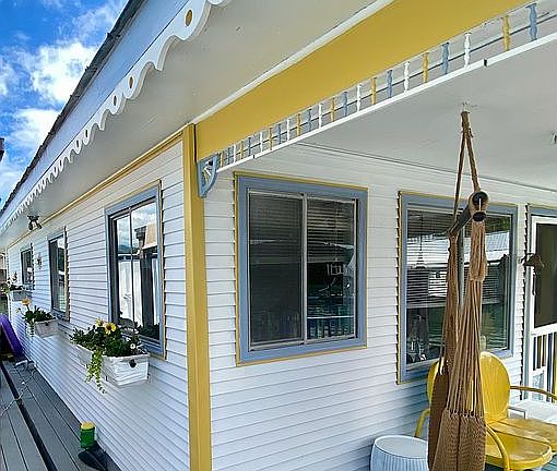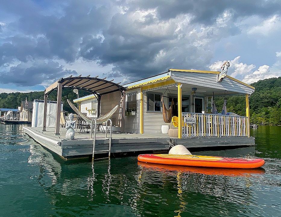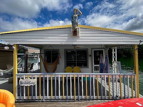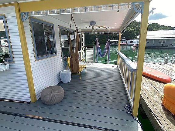 The historic Painted Lady is now for sale. Spacious “water-lot” (not overcrowded) at Flat Hollow Marina. Current TVA REGISTRATION 15’ x 30’ Cottage on 18’ x 40’ Float AND 12’ x 40’ Dock, 2 Bedrooms (Full Size Beds) & Futon in Living Room (Sleeps 6), 1 Full Bath with Shower, Vanity & Head, Electric Refrigerator, Gas Oven/Range, Toaster Oven, Microwave, Washer/Dryer, Gas Grill, Double Stainless Sink, Dual Window Air Conditioning Units (5,050 & 5,200 BTU Capacities), 6 Gallon Hot Water Heater, Patio Tool Shed and Storage Locker, On-Demand Water Treatment System w/UV Light, Lumber Decking, Aluminum Wrapped Styrofoam Floatation, Metal Roof, Vinyl Siding, Transom with Helm Controls & Wheel, Norris Lake Mooring Location Transferable with Shore Power! Included is a 2007(?) 11 foot Boston Whaler, with Mercury 25 HP outboard. Perfect for zipping around.