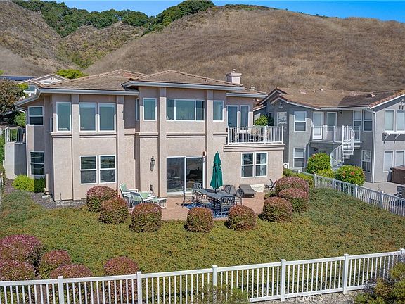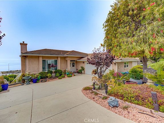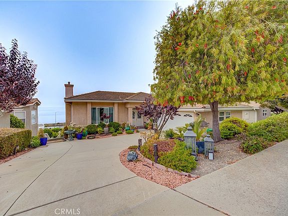 Welcome to the exclusive enclave at Rancho Pacifica. Developed as a capstone community of custom homes on the south end of the east side of Shell Beach, this beautiful home boasts the perfect middle location to enjoy sweeping point-to-point ocean and bay views. Watch whales and kayakers glide by -- and even have a box view of activities at Dinosaur Caves Park or the Pier from your panoramic kitchen, dining, primary suite and great room as well as downstairs bedrooms and living room. Spacious floorplan with soaring vaulted ceilings and upper story windows making a light and bright space. Live all on the main level with spacious great room boasting gas log fireplace, entertaining deck, gourmet kitchen perfect for staying engaged with guests and large dining space. Retreat to your primary suite oasis and wake to views of the bay. Primary bath includes jetted tub and dual vanities as well as walk-in shower and plenty of storage including large walk-in closet. Main level includes laundry and a powder room for guests. Downstairs is a perfect guest sanctuary with living room/den opening to finished paverstone patio with ocean views. Junior primary suite with ensuite bathroom also has dual vanities as well as a shared hall bath for the additional two guest beds. That makes a total of 4 bedrooms and four bathrooms if you are counting! Large right hand-approach garage and loads of off-street parking. This home has been carefully maintained and is ready for move-in!
