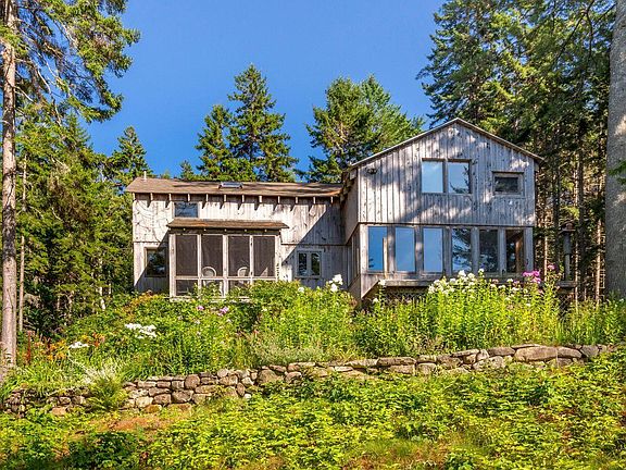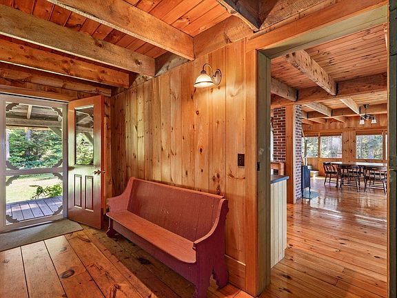 185 Forest Lake Road is an idyllic waterfront retreat with excellent broad views over the Medomak River and waterfront on both the river and Forest Lake. Sited on a hill, the seasonal home offers aesthetically pleasing character with wood-paneled walls and ceilings, brick accents, and large windows that look over the property to the water. The open floor plan features a versatile farmhouse-style kitchen that is open to the living room / dining room and there is a wood stove, ideal for cool summer evenings or crisp fall mornings. A small den or office adds additional living space, while two full baths and a laundry room complete the main floor. On the second floor is a spacious landing area with built-ins and three comfortable bedrooms. The appealing grounds include expert stonework and perennial garden beds, with stairs accessing a pocket sand and pebble beach. Additionally, a moss-covered walking path leads to the private dock, ramp and float on 730± feet of river frontage and there are two deep-water moorings. The 6.5± acre property is divided by Forest Lake Road and there is 600± feet of frontage on Forest Lake, as well as another 850± feet of shoreline on Forest Lake Brook, which rambles pleasantly from Forest Lake to the Medomak River.