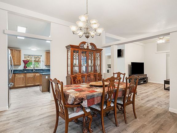Remodeled home w/high ceilings and open layout perfect for entertaining. This home has an extra room for an office or bedroom. Gorgeous new kitchen has ss appliances and gas stove. Master bath features a jetted soaking tub and beautifully tiled shower. RV parking and hookups sit next to an 828 sqft garage with ample storage. Fenced backyard has a covered patio, hot tub, fire pit and play structure. Updates include new roof, interior/exterior paint, interior trim, both baths and LVP flooring.
