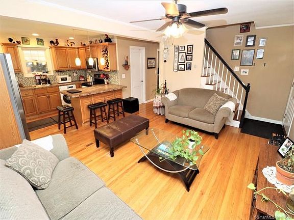 Walk into the front door of this move in condition, open floor plan, cape and you will instantly fall in love with the way the living room opens up to the kitchen. Hardwood floors flow through the living room, kitchen and both 1st floor bedrooms. A breakfast bar, ceiling fan, and generous lighting makes entertaining a joy in this home. The first floor full bathroom is tastefully done with a bathtub shower. The second floor has a small landing at the top of the stairs, a bedroom, and a good sized full bath also. The basement is partially finished with two separate areas. One that works as a family room and another as a storage area, utility room and laundry area with a hatchway access to the back yard. The exterior is Vinyl Sided with a 1 car oversized detached garage and a mostly fenced in yard for some privacy on this corner lot. A great home ready for you to move right into. Hurry so you don't miss out on this beautiful home. Open Sunday July 25th 1-3pm
