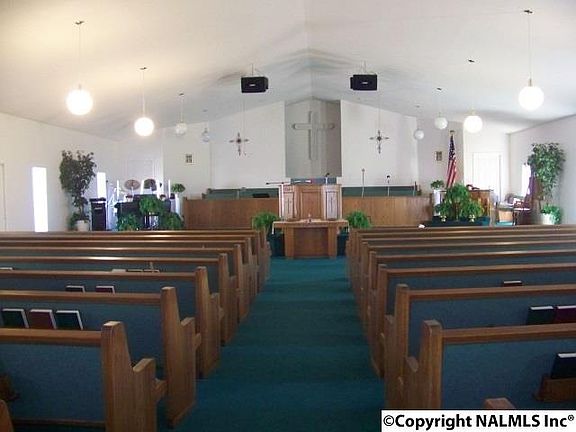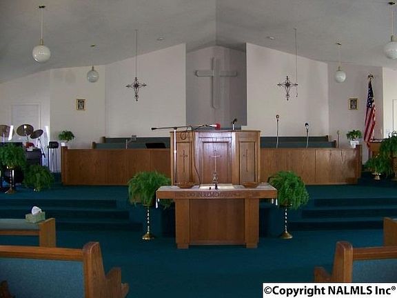 Brick Church w/over 5800 sq ft in excellent condition. Sanctuary seats 200-250 people, baptism chamber w/heater, church pews, 2 offices, large room w/kitchenette, 6 class rooms, 2 bathrooms, CH&A is gas/elec. Vinyl Gym with fellowship hall that has 7300 sq ft, basketball court, rollup warehouse door, sound system, DR, Super nice Kit w/appliances including 3T icemaker, 2 bathrooms, storage room, heaters, fans, upstairs has elec & plumbing, CH&A is gas/elec. Brick House w/1383 sq ft, 3BR/2B, appliances, heat pump, back deck, garage.