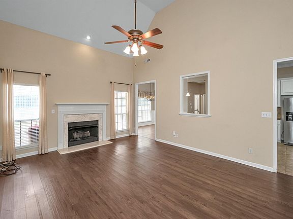 Lovely 3 bedroom 2 bath 4-sided brick home has a very large open floor plan, combining great room with fireplace and dining room accompanied with beautiful wood floors. Tile floor in the kitchen, gorgeous granite counters, a larger work area along with tremendous cabinet space featuring new appliances and faucet. Trey ceiling in primary suite & is split from other 2 bedrooms. 4th bedroom is upstairs and can be used as an office, kids playroom or a separate family area. Fenced in back yard is super handy for your 4-legged family friends. A wonderful & beautifully built home for so many reasons. Please come on by - you won't want to miss this amazing opportunity to live in a very charming area in Alabaster.