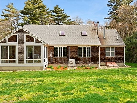 **OPEN HOUSE CANCELLED SELLERS HAVE ACCEPTED AN OFFER**. Welcome to 185 Great Neck Road! Step into a serene retreat with this delightful contemporary cape-style home that beautifully blends modern comforts with the tranquility of a private sanctuary. The main floor boasts everything you need, including an updated open eat-in kitchen, a sun-drenched living room with vaulted ceilings and a cozy gas fireplace, a laundry/utility room, a bonus living room/office area, and a first-floor primary bedroom complete with en suite.Relax and unwind in the three-season room overlooking the private backyard, with over an acre of land perfect for gardening, entertaining, or simply enjoying the outdoors. Upstairs, you'll find two additional bedrooms and a full bath Located just a short walk or drive from beautiful Little Harbor Beach & Little Harbor Golf Course in the desirable Great Neck Area, this home is a haven for those seeking a quiet lifestyle with easy access to nearby Cape Cod!