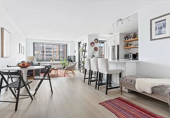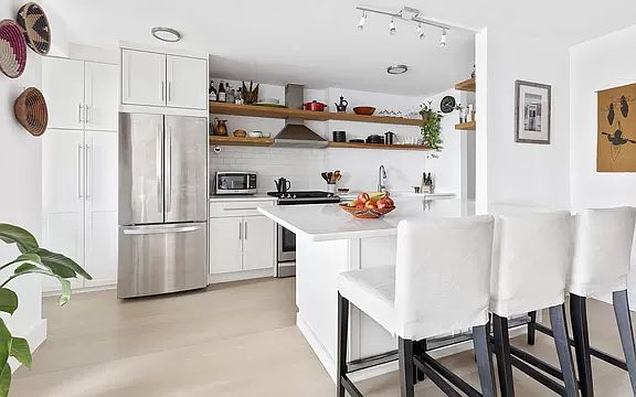 This bright and open high-floor home has been fully renovated with high-quality, modern finishes. The living room is enormous and adjacent to the open kitchen which has tons of storage, stainless appliances (including a dishwasher), and a huge floating island for cooking and eating, plus there is plenty of room for a full-size dining table. The private balcony is off the living room, a perfect place for morning coffee or an evening glass of wine while taking in the views of Brooklyn and Manhattan. The bedroom is large enough to accommodate a king-size bed and bedroom set, plus still have room for a sitting area or home office. The bathroom was recently renovated and features sleek white tile and stone tile flooring. In addition, brand-new wood floors were recently installed throughout, and there are three spacious closets for plenty of storage. 185 Hall Street is part of the Willoughby Walk Apartments, a well established Clinton Hill Cooperative located just across from the Pratt Sculpture gardens. The lobby is staffed 24-hours a day, plus the building has an on-site maintenance team and building management. There are also elevators, laundry facilities, bike storage, and additional storage and parking (wait listed). Neighborhood amenities include gorgeous Fort Greene Park and some of the best restaurants in the borough along Myrtle and Dekalb Avenues. There are new attractions at the Navy Yard, including a ferry stop, Russ and Daughters, and Wegmans grocery store. Two farmer's markets, BAM, Pratt Institute and sculpture garden, City Point, Barclay's Center, plus the newest Whole Foods and Apple store are all nearby. The closest subway stations are the Clinton/Washington G and C stops, and the B54, B69, B38 are also easily accessible with quick access to all the subways near downtown Brooklyn. There is also a ferry stop at the nearby Navy Yard with service to Manhattan in under 15 minutes minutes. Pets are Allowed! Pied-a-terre OK Sublets are permitted on a case-by-case basis with board approval Just 10% minimum down