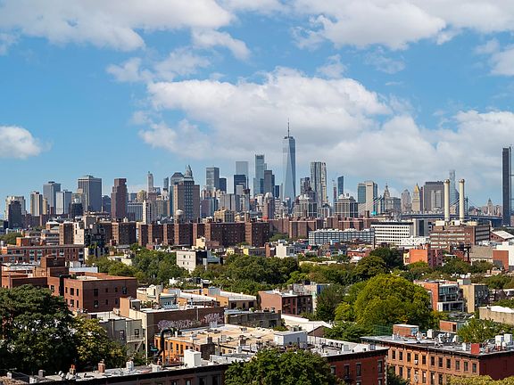 High above the treetops in lovely Clinton Hill, is a beautiful one-bedroom co-op apartment with unobstructed views of Manhattan and incredibly LOW monthlies. As you enter Apt 1510, you'll be greeted by a large picture window and expansive views of the Manhattan skyline to the west. The all-day sunlight, Instagram-worthy sunsets and nighttime cityscapes make this apartment truly unique. All of the incredible view images in this listing have been taken from the windows of Apartment 1510. The spacious bedroom offers the same amazing views with plenty of room for a king-sized bed and chest and has a large two-wardrobe closet. The kitchen features light stone countertops, stainless steel gas range and plenty of thoughtful storage. The bath has been newly refreshed and features a rain shower and new vanity with storage. Blonde FSC certified maple floors add to the sense of airiness and light in the space and are uniform throughout. Willoughby Walk is a pet-friendly majority owner-occupied building and well-established Brooklyn cooperative located within the Clinton Hill Historic District. 90% financing is permitted as are pieds-a-terre and there is a liberal sublet policy. There is laundry in the building, lobby security desk, a garden and a passageway that leads directly to the grocery stores, restaurants and coffee shops on Myrtle Avenue. Clinton Hill also boasts a long list of restaurants, nightlife spots and great coffee shops including Bar Bolinas, Tepango, Socco, Osteria Brooklyn, Da Circo, Peck's, BKG Coffee Roasters and Petee's Cafe. Grocery options include a Key Food, Mr. Coco and Farmer in the Deli. Nearby health and wellness offerings include Laura Staton Yoga, Grey's Gym BK Fit Studios and proximity to several parks and gardens. St Joseph's College with its' historic buildings and the storied architecture of Clinton and Washington Avenues is two blocks to the west. Convenient transportation is located at Clinton-Washington Aves G and the Franklin Avenue C and S.