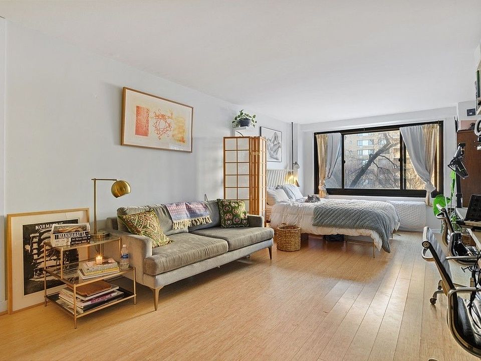 Priced out of Clinton Hill One Bedrooms?? This is your opportunity to own a large, sunny studio nestled in the tree tops, that feels every bit like a one bedroom. Tastefully renovated with an updated kitchen and bathroom and new floors throughout. The primary room is large with oversized windows making up the entire east-facing, far wall. The unit also boasts a large separate kitchen and significant closet and storage space. The Coop is a majority owner occupied building located at the corner of Hall and Willoughby across the street from the Pratt Institute's sculpture garden, a few blocks from Fort Green Park and restaurants along Dekalb Ave. The Coop has solid financials and is well-run and well-maintained. There is a laundry room and storage are in the basement, 24-hour security and full maintenance staff. Dogs and cats are welcome. Steps away is a private walkway accessing Myrtle Avenue where you will find restaurants, lounges, boutiques, grocery stores, pharmacy, and post office. Transportation is easy with the Clinton/Washington G stop, the B54, B69, B38 easily accessible. Parking is accommodating on the street and there is a waiting list for private parking in the building's lot. Showings by appointment only. Mon-thru-Fri 1pm- to- 5:45 pm.