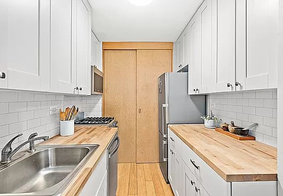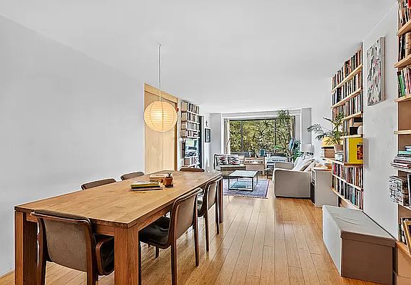 How would you like to live in a spacious zen treehouse (with balcony!) in the heart of Clinton Hill? Facing east over the tree line, this much loved home is a gem. It's been transformed from the typical apartment by the installation of beautiful matching hardwood floors, doors, shelving, and trim throughout. This summer the kitchen was gut renovated and outfitted with new stainless steel appliances, cabinets, and butcher block counters. The bath has new floors and wall tile, vanity, mirror and reglazed tub, The alcove off the kitchen has been enclosed and can be used as an office or small windowed bedroom. The living/dining room easily fits large comfortable furniture as seen in the photos There is excellent closet space at the foyer as well as in the king sized bedroom, and the apartment has big windows and an open, lofty feel. Don't forget to bring your hammock! Besides the already generous interior dimensions, the private balcony is almost 100 square feet. This is a home you can spread out in that also has a true vibe. You'll feel it right away. Willoughby Walk is a two building coop with 24 hour security, on site management and maintenance, laundry, bike room, storage and parking. Easy access to transportation (Citibike, C/G trains, bus), the dining and shopping of Myrtle Ave, bucolic Pratt, and all the other charms of Clinton Hill and this lovely area of Brooklyn.