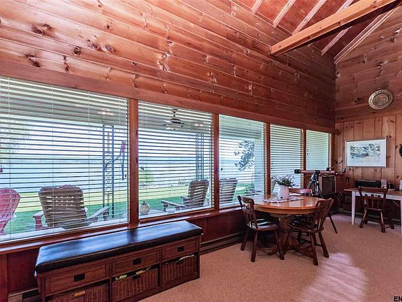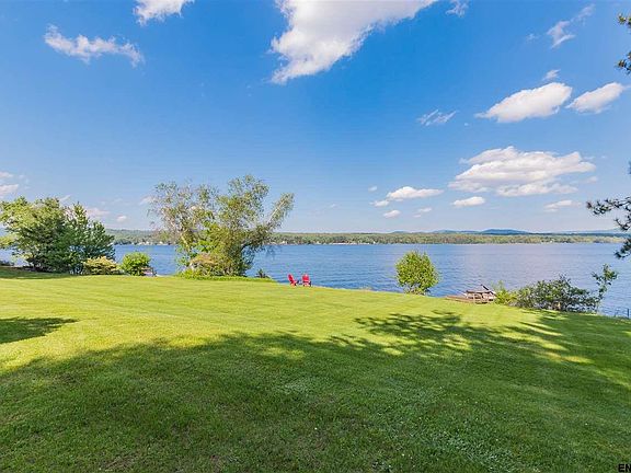 WOW! Amazing 180 degree view of the lake right out the front door! A true Adirondack home with a vaulted Great Room and stone fireplace. Plenty of room for guests with 3 bedrooms on the main floor and a loft bedroom. A unique lake house grandfathered in this close to the water! 259 ft. frontage! Located on a quiet dead end road with over an acre of privacy! You'll love the 1950's large print on the wall showing this whole area. This picture, many furnishings, and the floating dock stay. Don't wait!