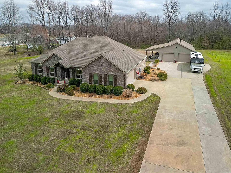 Welcome to this stunning craftsman style home nestled on 1.38 acres of picturesque land. This charming 4-bedroom residence features beautiful tile wood floors throughout, adding warmth and character to the living spaces. The bathrooms are adorned with elegant vessel sinks for a touch of luxury. Step into the expansive master suite boasting a huge closet, perfect for organizing your wardrobe. Outside, the brick exterior exudes timeless appeal, while two spacious back porches offer the ideal setting for outdoor relaxation and entertaining. Additionally, this property includes a massive heated and cooled shop 30x60 with a 12x36 covered porch, complete with a bathroom and shower, ideal for DIY projects or extra storage. With a 50 amp RV hookup on site, this home is a true gem for those seeking both comfort and functionality. Huge storm shelter.Don't miss the opportunity to make this dream property yours today!