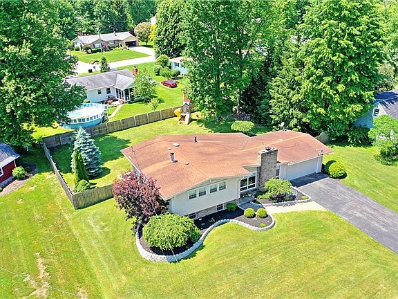Featuring a beautifully living space and a fenced in back yard, this sprawling Cortland ranch is poised to delight! Hurry in today to take in its handsome good looks inside and out, to include the well-manicured landscaping and relaxing, inset rear patio space around back. The open central layout offers unique design elements such as a heavy use of glass work in the long-running foyer and a front facing chimney that makes for an engaging kitchen fireplace, easily enjoyed at casual bar-top dining. Tiled flooring runs beneath and continues throughout the galley kitchen, ending at the formal dining area sat just outside the posh living room. Adding to the value, fresh carpeting will be installed on the first and lower floors of the home at sale. Upstairs, take in the inviting three-bedroom layout to include an oversized master bedroom suite, complete with walk in closet and robust bath with both private and public access. Down below, the lower level employs a second fireplace in its welcoming family room. An additional full bath can be found adjacently along with a fourth bonus room leading to the rear deck and laundry locations. The partial sub-basement provides yet more storage space beneath.