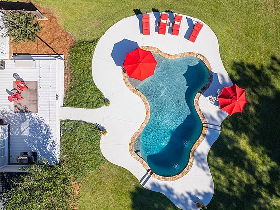 Stunning Home in Popular Hickory Grove! West Lee County! GORGEOUS In-ground Pool! Excellent home for entertaining! 3 Bedrooms + 2.5 baths + Office (could easily be used as a 4th bedroom or formal dining room) with nearly 2,300 sq ft of living space! This home has beautiful hardwood floors, a large family room with an expanse of windows overlooking the backyard and pool area, a tray ceiling and a gas log fireplace! The kitchen features granite counter tops, back splash, lots of cabinets, extra-large pantry, tile floors, breakfast bar & breakfast nook w large window overlooking pool! The primary bedroom is VERY LARGE and the private en suite bath offers double vanities, a jacuzzi, separate tiled shower with 2 shower heads and a walk-in closet with nice built in shelving! The two spare bedrooms are super-sized w/ great closet space! Outside boasts plush landscaping, a large back porch/deck area, an amazing gunite POOL with a waterfall (salt water & in-floor sweeper system), a privacy fenced backyard, underground fencing for your pets, a wired 12x20 wired workshop with a roll up door, a 2.5 car garage with a large storage room attached and a sprinkler system (entire yard)! There is also a private well for yard and pool use (MAJOR SAVINGS)! The owners have completed many updates including new windows (2024), a new roof (2019), new paint inside and out (2019), new pool filter system (2024), new septic system (2022), new carpeting (2019), new privacy fencing (2019), recessed lighting with smart switches and USB plugs added throughout most of the home, updated HVAC unit including a separate unit for the primary suite (2017), and much more! This is a very well kept, upgraded and super clean home ! Wonderful neighborhood close to the by-pass, shopping and dining! Be prepared for Spring Swimming Pool Season!