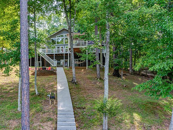Beautiful Craftsman style LAKEFRONT home located in Deerfield Subdivision. Spend time relaxing and playing in a beautiful deep water cove. With a gentle walk to the water this 5BDR/5.5BTH home features an open floor plan, 5 master suites, large kitchen, large screen porch, covered porch overlooking the lake. Well maintained decks overlooking your private double decker dock with boat lift and jet ski ports. Don't forget the garage- it is big enough to store your cars or your boats. Golf cart path gives you easy access to the lake and your dock. Furniture & furnishings are negotiable.