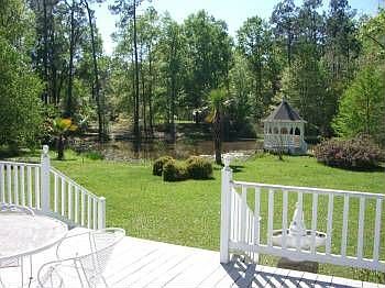 "PARADISE" living with pond, gazebo, mature flowering, shrubs. Enjoy views from front and rear porches. Great room has soaring ceilings and cozy fireplace. Large master bedroom with immense closet. Extra rooms up. Detached garage and guest quarters.