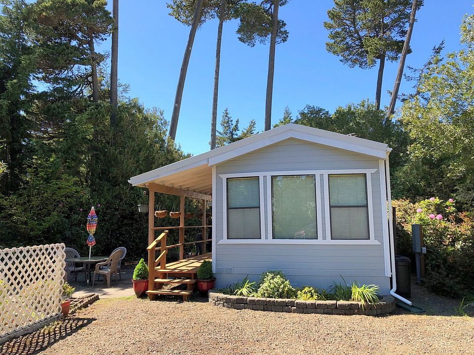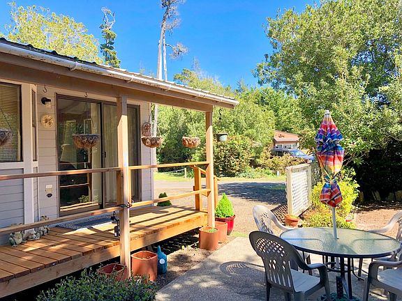 Move-in ready fully furnished, fulltime or vacation home-everything you need & you own the land! glasstop stove, new stainless sink, new ductless heat pump, new 50gal water heater, all new plumbing. bath has new high-rise toilet, sink, faucet, vanity & resurfaced tub. Bdrm has room/plumbed for stackable W/D. Plenty of storage space. New exterior paint, new covered cedar deck, elec box & metal roof. Relax & unwind!