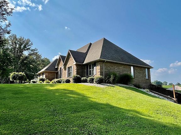 Nestled between Columbia and Campbellsville this gorgeous custom built brick home with picturesque views on 35 acres m/l is your ticket to the country you've been dreaming of, away from the hustle and bustle of the city! A boat ramp on beautiful Green River Lake is less than 2 miles from your driveway, so bring your boat and your kayaks too! Once you take a step in this home it does all the talking; from the open concept with vaulted ceilings, crown moldings, floor to ceiling arched windows, granite countertops, and so much more. The In-Law suite in the basement features a kitchenette & gas fireplace with it's own private entrance from the lower driveway. The home is equipped with Geo-Thermal to keep utilities at a minimum. Call today for more information or a private showing!