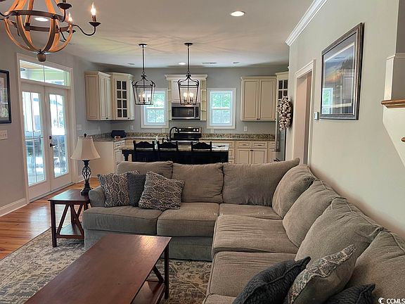 Just Lowered!! This is your Low Country dream home in the sought after neighborhood of the historical Wedgefield Plantation! This spacious custom home was built in 2017, and has everything you may need with 3 bedrooms 2 1/2 baths and an office. The heart of pine flooring is lovely throughout the main living areas as well as the kitchen. The kitchen is a dream, with a pretty granite countertops, tons of cabinet space, stainless appliances and a large copper sink in the island. Also, there is an extra large walk-in pantry that is fantastic storage space. The first floor master suite hosts a beautiful tile shower, large soaking tub, his and her sinks, and a walk-in closet. The two bedrooms upstairs, both with ample closet space, share a bath with a double vanity. The de-attached double garage offers plenty of storage space. There are front and back covered porches to enjoy too. The home is on a cul-de-sac, making it a private lot, with a fenced in backyard and a pond beyond the property line. You can enjoy access to a private boat landing to the Black River.