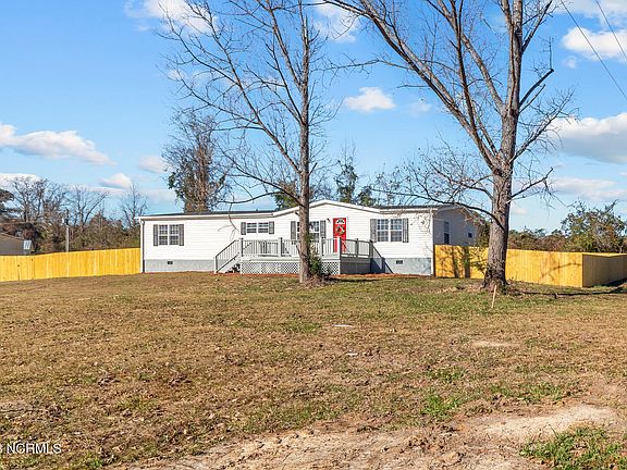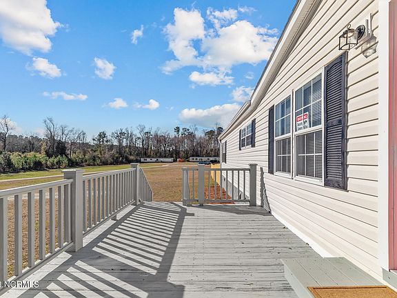 Welcome to the secluded 185-1 Justice Rd in Jacksonville NC. This fully remodeled manufactured home has had all the updates done! Brand NEW septic system, Brand NEW roof, Brand NEW gutters, Brand NEW fence, Brand NEW vanity and toilet in the hall bathroom, Brand NEW free standing tub and vanity in primary bathroom, Brand NEW stainless appliances and counter tops in the kitchen, Brand NEW flooring throughout, freshly painted and Brand NEW lighting! HVAC has been inspected, serviced and cleaned. All work was permitted and inspected by the county. Be the first to get into this newly renovated community with a private pond and 7 acres of elbow room (in total in the neighborhood) There are 4 other units that are being remodeled and will be sold as well in the neighborhood.