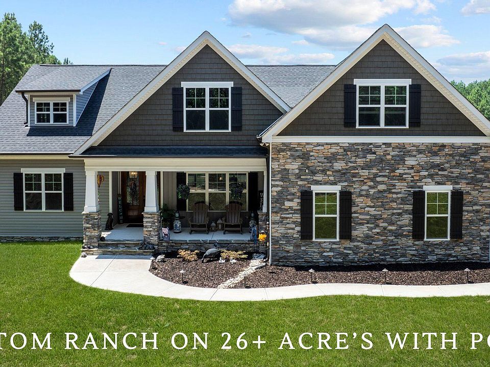 26 Acres of UNRESTRICTED, SUBDIVIDABLE LAND WITH POND and a Stunning one story living home built in 2021! The interior checks all the boxes with its stunning Wood Floors, Chef's Kitchen with massive Island, Quartz Counters and Gas Range. Beautiful Trim Work and Designer Lighting throughout! The Primary Suite has an exceptional Water View and wait until you see the Tiled Shower! Three total Beds on the main floor PLUS another Bed/Full Bath and Bonus on the second floor as well as 665 SF of unfinished storage. The 3 Season Room will surely be a favorite, perfect for NC weather. Enjoy time by the custom built fire pit, or throw the rod in the pond and feel completely unhooked in your new serene environment. Additional 24x24 outbuilding on concrete on the property plus storage shed. Additional acerage is available! 5 min drive to Capitol Blvd, 25 to Wake Forest, 15 to Louisburg, and 10 to growing Downtown Franklinton. Charter Schools available nearby! Pool Table, Chicken Coop Playset and Trampoline can be included with the sale!