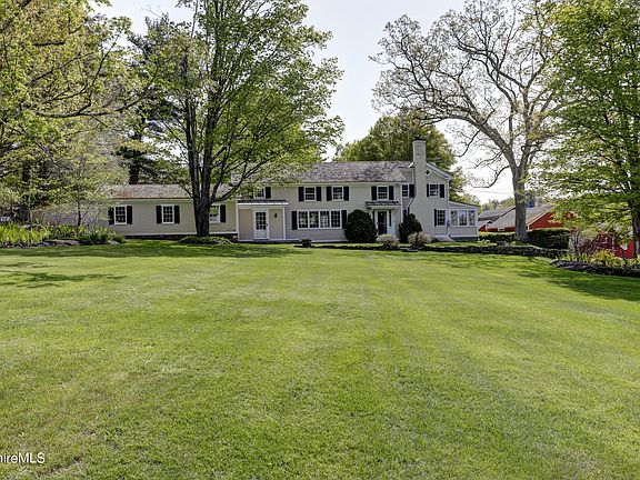 Blue Hill Farm: an 1820 Center Hall Colonial farm and farmhouse in excellent condition on 249 high acres with organic hay meadows and pastureland, an apple orchard, woodlands, gardens, tennis court, a 1970's caretaker/farmer's house and multiple barns. The main house has 6/7 bedrooms and three baths, along with a three-car attached garage. The property consists of seven parcels of contiguous land surrounded by the Umpachene River on three sides. There are long views to the west of the Taconic Range from inside and outside of the home, and a grouping of supportive barns to the south across a very rarely traveled, narrow dirt road. Offered for the first time since 1967, this is truly an unusual and rare offering with development possibilities featuring extraordinary views.