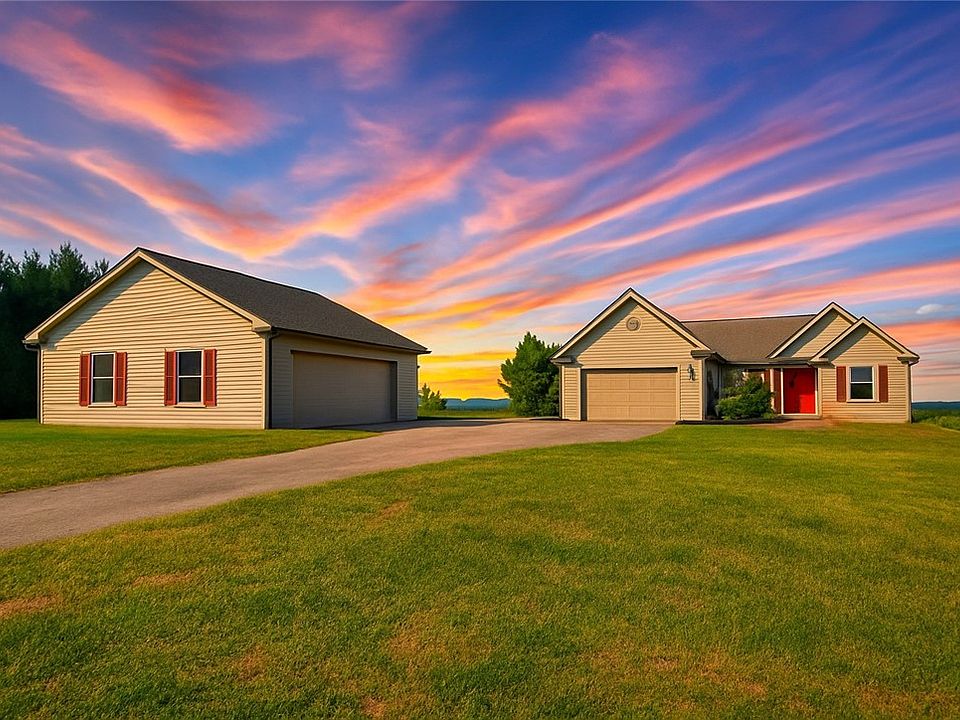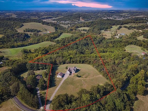 Welcome to 185 Knox Rd. in Claysville, PA! Built in 2003, this home sits on (10.4 Acres) with Stunning Views and features 3 bedrooms, 2 full baths, including a Master Ensuite with extra closets. Hardwood floors highlight the main living areas, complemented by an open-concept design and cozy Gas Fireplace. The kitchen offers crown molding, under-cabinet lighting, abundant cabinets, and countertops, with all appliances included. Enjoy an attached 2-car Garage plus a (31x27 Detached Garage/building) with water and 200-amp service, while the home itself boasts 500-amp service. The expansive 49x46 lower level includes a walkout, is plumbed for a bathroom, and is ready for drywall. Relax on the covered back patio with a firepit, landscaped yard, and (breathtaking views)