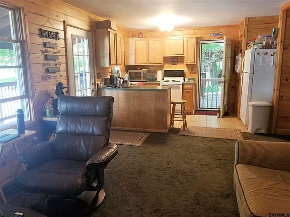 Rare Find on the Great Sacandaga! Relax on your wrap-around deck while enjoying your morning coffee, overlooking the water and taking in the views and sounds of nature around you. This knotty-pine cottage is nestled in a "camp" setting with one bedroom and bath down and a large sleeping loft up. Ceramic-tiled kitchen and bath. Fire pit area, dock and 50' of lakefront.