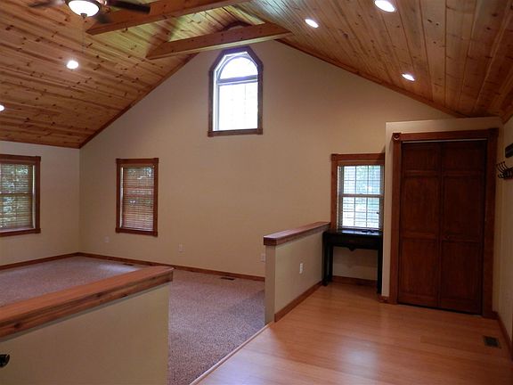 Stunning Contemporary Home!! Vaulted ceilings, stone frpl in great rm, hickory cab w/ SS appl, first floor master suite w beautifully tiled bath, 28 x 24' family room, loft w/ office space & reading nook, addt'l mst bdrm on 2nd floor w/tiled bath, an abundance of natural light thru-out. Screened Porch. Outdoor deck w/stone frpl. Det 2 car garage has fin upper level w 1/2 bath. Easy access.