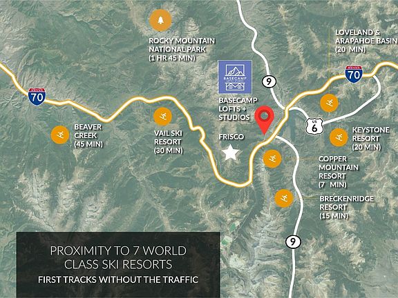 BRAND NEW MARKET RATE RESIDENCE WITH NO DEED RESTRICTIONS! With its central Frisco location, Basecamp Studios provides the mountain enthusiast with everything they need and nothing they don’t. Perfectly situated in the Central Rockies, new Basecamp owners will have convenient access to the I-70 corridor for outdoor recreation from A-Basin to Moab, as well as easy routes to Denver and DIA. The innovative design of the studio residences offers a dedicated sleeping area, full kitchen, in-unit laundry, outdoor living space, and two outdoor storage rooms for all of your seasonal mountain gear. Located next to Whole Foods Market, Outer Range Brewery, Pure Kitchen, Basecamp Wine and Spirits, Epic Mountain Gear and the Summit County Transfer Hub, the location is second to none for your mountain-metro experience. The homes are LEED Gold certified and will be serviced by electric heat/cool pumps for the utmost in energy efficiency and environmental consciousness. Plus, two private storage closets, 88.5 sf total. Don’t wait—secure your Basecamp today! *99 year ground lease included in HOA dues.